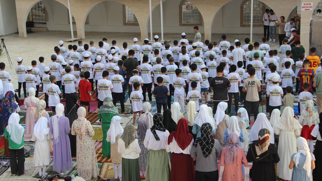 Yapılan yürüyüşün ardından cemaatle namaz kılan çocuklar, yapılan program kapsamında ezberledikleri ayet ve hadisleri okudu.