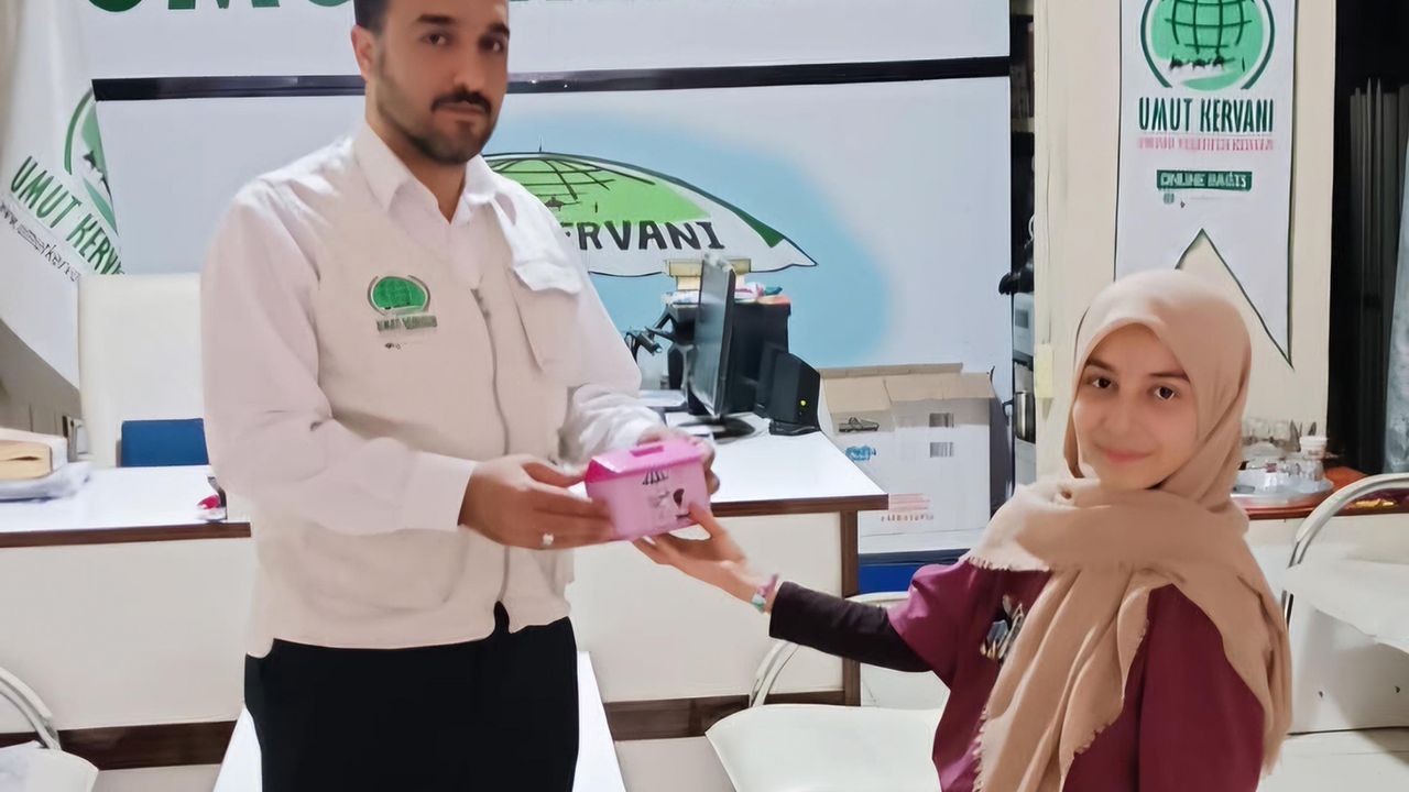Gazze'de yaşıtları açlık ve susuzlukla mücadele ederken, topladığı parayı harcayamayarak Umut Kervanı'na gelen 11 yaşındaki Müberra Aslan, kumbarasında biriktirdiği parayı yetkililere teslim ederek yaşıtlarına örnek olacak büyük bir duyarlılık örneği gösterdi. (İLKHA)