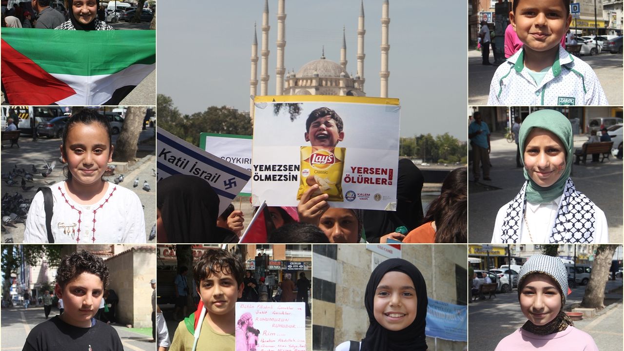 Adana’da bir araya gelen çocuklar, Gazze’de yaşanan soykırıma sessiz kalmayarak tepkilerini dile getirdi.