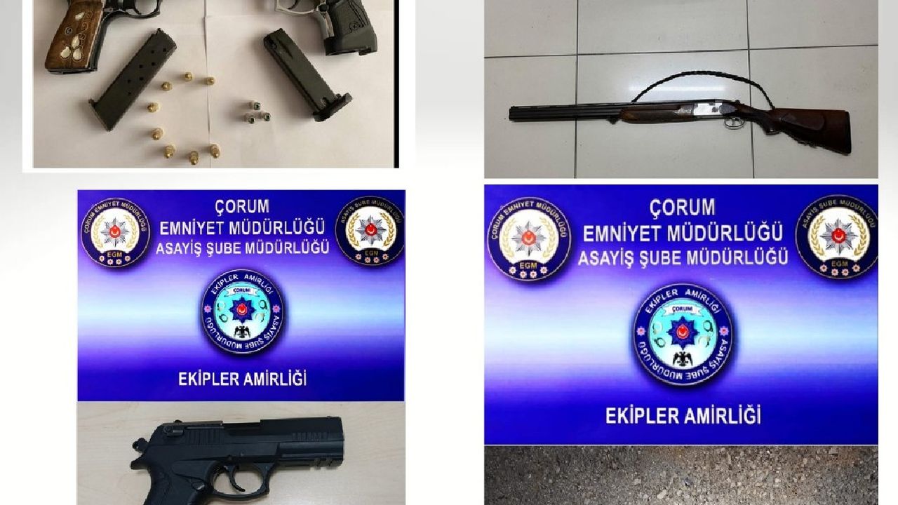 Uygulamalar kapsamında, 3 ruhsatsız tabanca, 2 kurusıkı tabanca, 4 av tüfeği, 3 kesici-delici alet, 24 fişek ve 5 şarjör, 56 sentetik ecza, 99 gram bonzai ile 0,95 gram metamfetamin ele geçirildi.