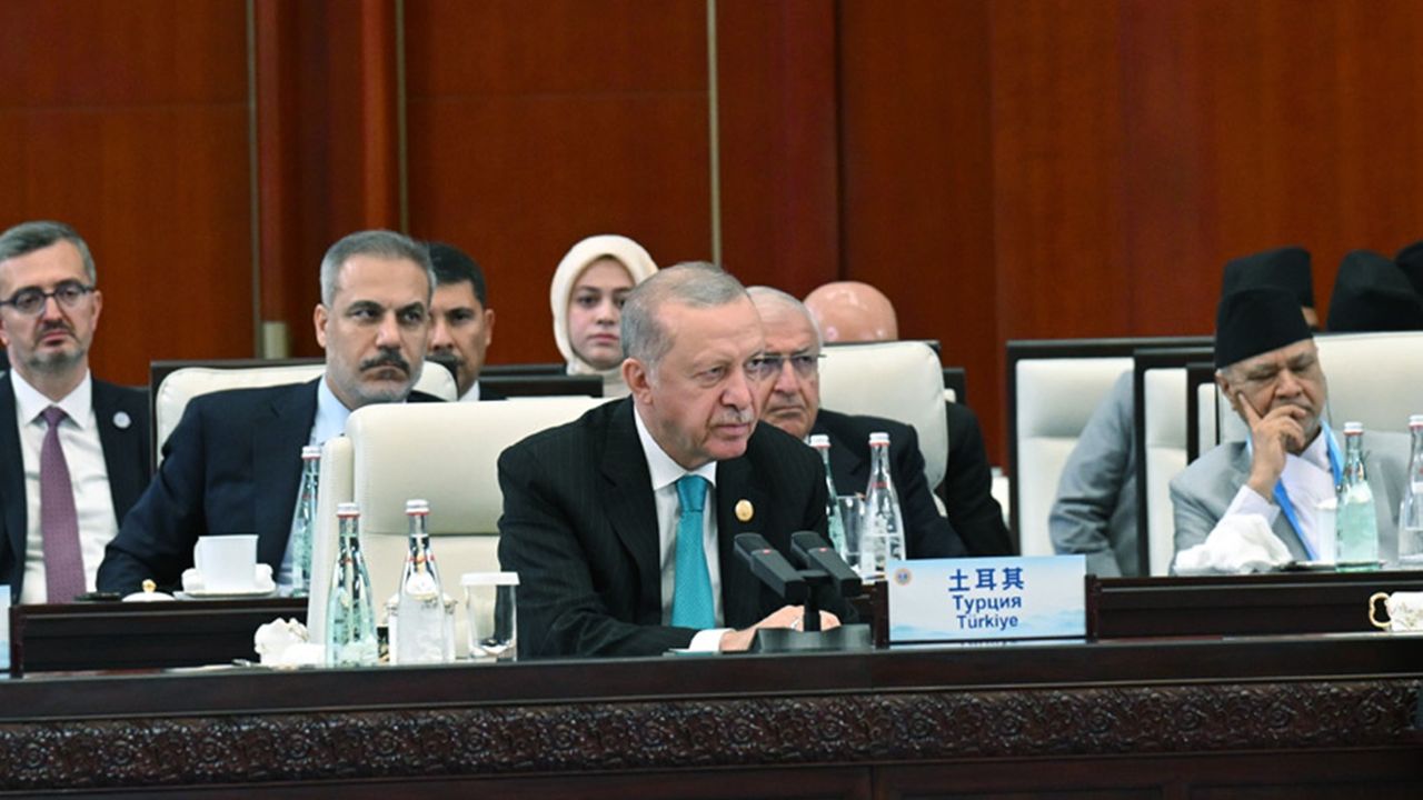 Cumhurbaşkanı Recep Tayyip Erdoğan, Çin’in Tiencin kentinde düzenlenen Şanhay İşbirliği Teşkilatı'nın 25. Devlet Başkanları Konseyi Zirvesi Genişletilmiş Oturumu’na katılarak bir konuşma yaptı.