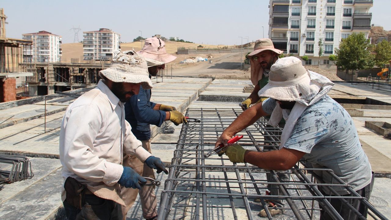 Batman'da etkili olan aşırı sıcaklar, dış mekânda çalışan emekçileri zor durumda bırakıyor. Termometrelerin 45-50 dereceyi gösterdiği bugünlerde, demir bağlama ustaları güneşin altında demirle temas ederek çalışmak zorunda kalıyor.