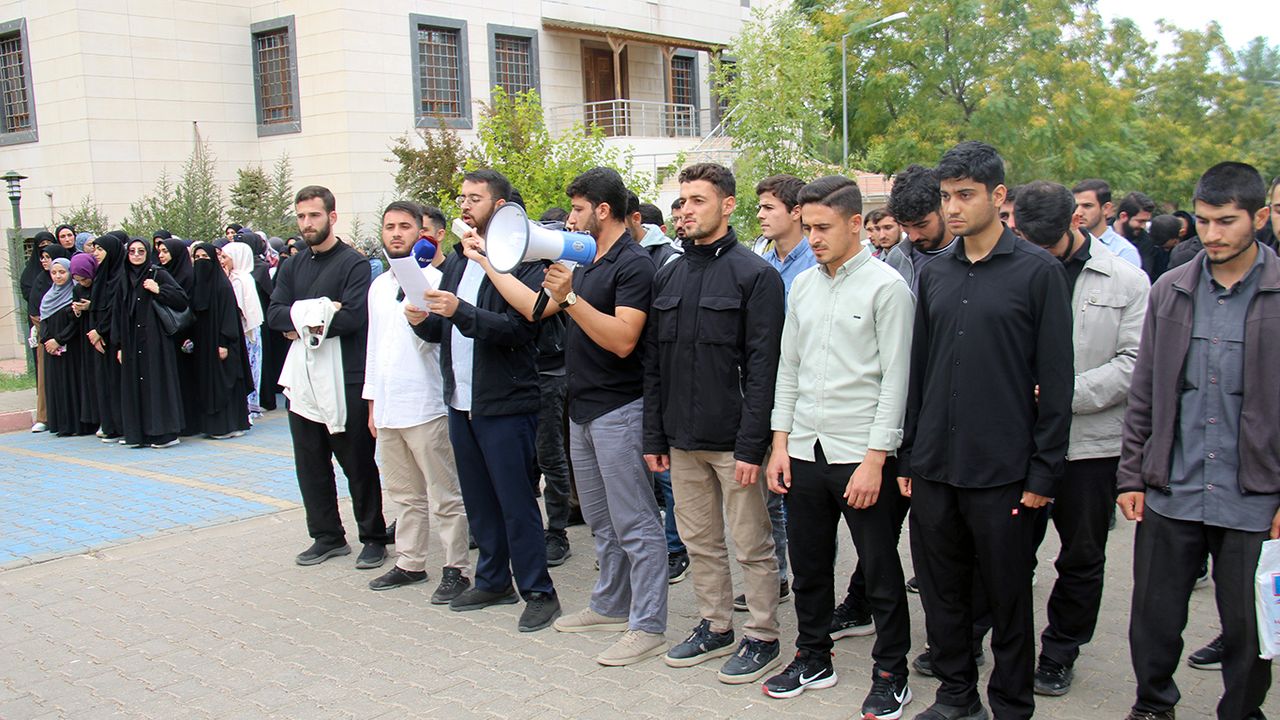İlahiyat Fakültesi önünde düzenlenen basın açıklamasını Kutbettin Esmer okudu.
