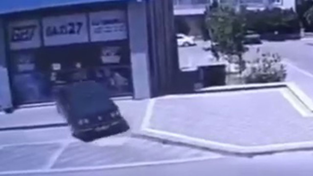Edinilen bilgilere göre, sürücünün fren yerine heyecandan gaza basması sonucu araç kontrolden çıkarak iş yerinin vitrininden içeri girdi.