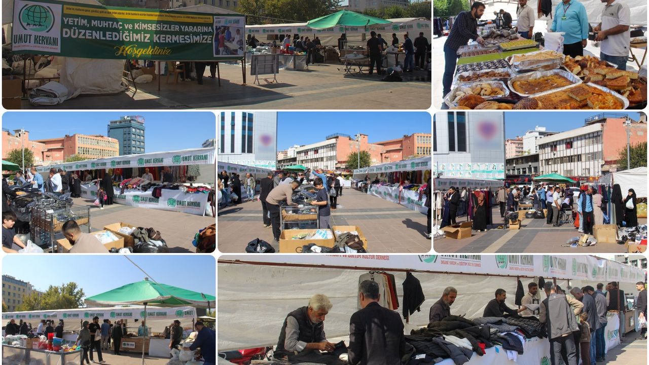Kentteki mağdur ve muhtaçlara yıl içerisinde çeşitli yardımlarda bulunan, binlerce kişiye ayni ve nakdi yardımların yanı sıra kırmızı et, gıda, giyim ve ev eşyası yardımı dağıtan Umut Kervanı, düzenlediği kermeslerle de ihtiyaç sahiplerinin yüzünü güldürmeye ve onlara umut olmaya devam ediyor.