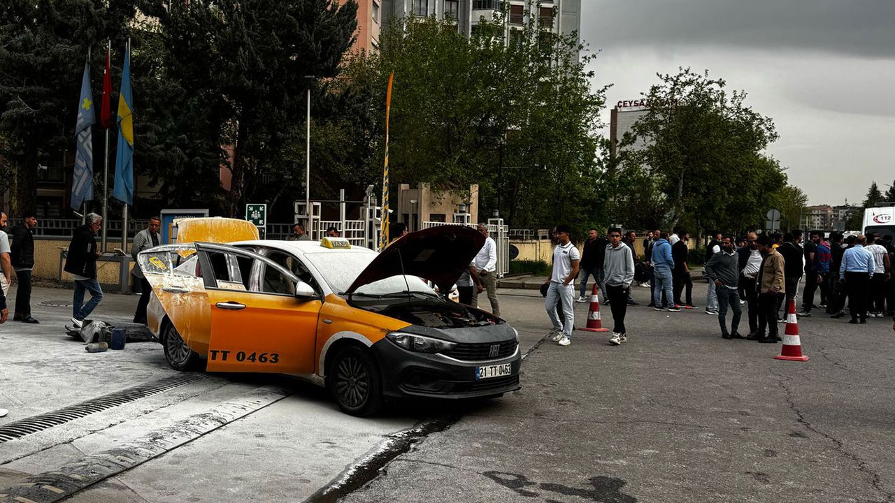 İtfaiye ekipleri patlamanın yaşandığı ticari taksideki yangına müdahale ederken, sağlık ekipleri de yaralıları ambulansa taşıdı.
