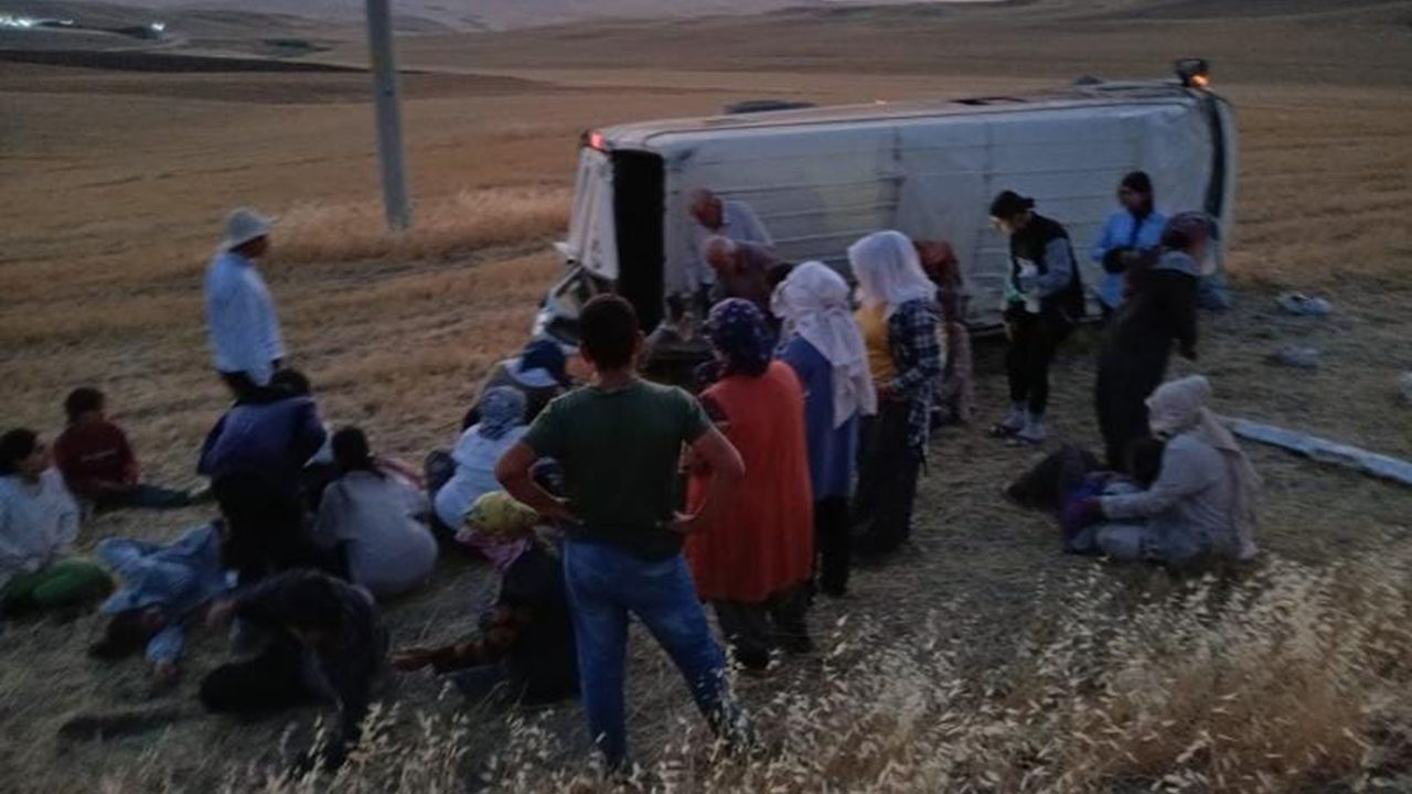 Edinilen bilgilere göre, rampalı ve bozuk yolda seyir halinde olan minibüs, sürücüsünün direksiyon hâkimiyetini kaybetmesi sonucu kontrolden çıkarak şarampole yuvarlandı. Tarım işçilerini taşıyan minibüs, kazanın etkisiyle yan yattı.