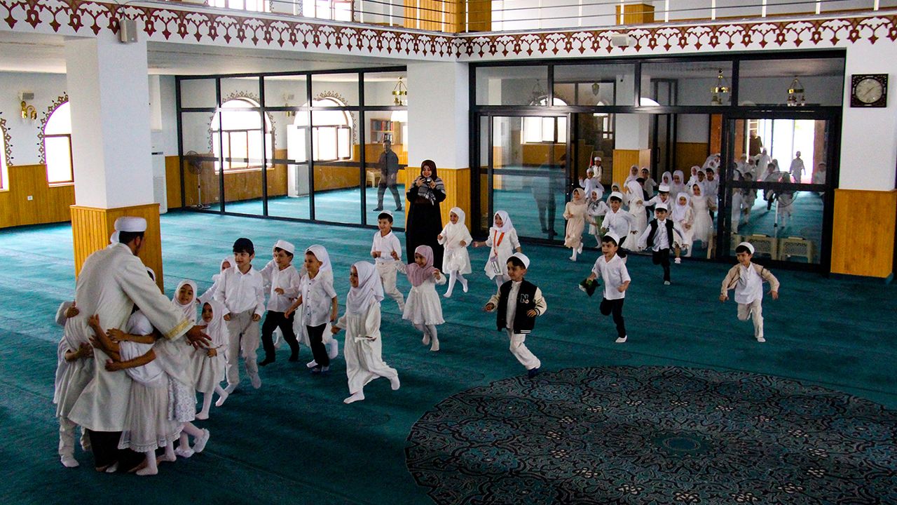 Renkli görüntülere sahne olan ziyarette cami imamı çocuklara cami ve camide yer alan minber, mihrap, imam ve imamın kıyafetlerini anlattı. Onlara cami adabına dair kısaca bilgiler verdi. Ardından çocuklar imam eşliğinde namaz kıldı, Filistin'deki akranları için dualar etti.