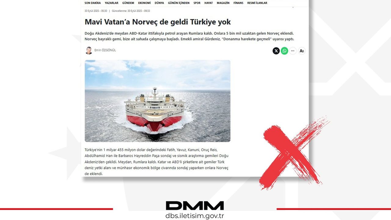Sonuç olarak; Türkiye’nin Mavi Vatan konusundaki kararlılığını hedef alan bu iddialar gerçeği yansıtmamaktadır. Kamuoyunun yanıltıcı bilgilere itibar etmemesi önemle rica olunur." (İLKHA)