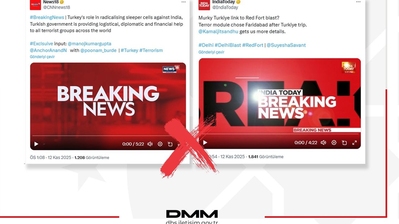 DMM'nin sosyal medya hesabından yapılan açıklamada, Hindistan’da yayın yapan bazı medya kuruluşlarında, “Türkiye’nin Hindistan’daki terör eylemleriyle bağlantılı olduğu, terör gruplarına lojistik, diplomatik ve finansal destek sağladığı” yönünde maksatlı yayınlar yapıldığı, bunun iki ülke ilişkilerini zedelemeyi amaçlayan kötü niyetli bir dezenformasyon kampanyasının parçası olduğu belirtildi.