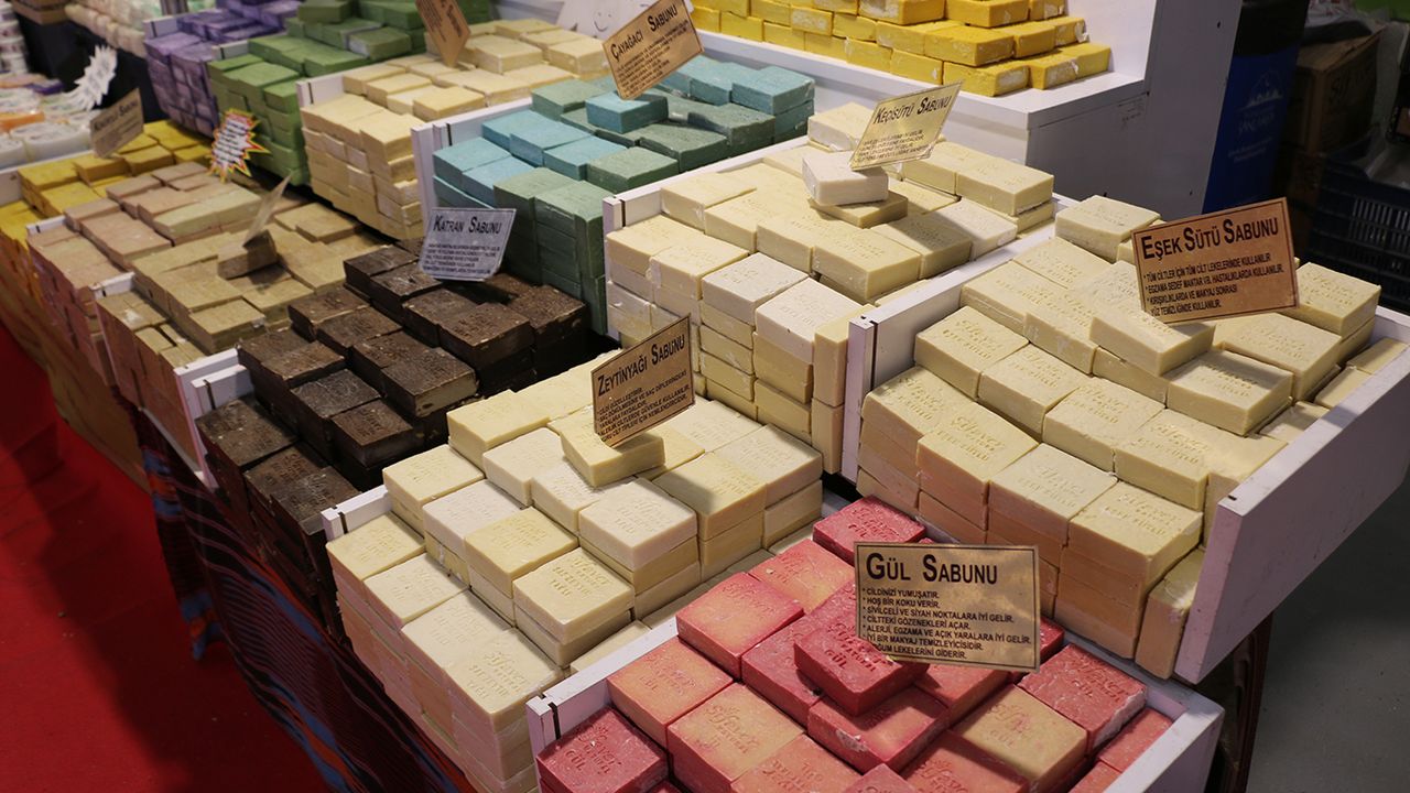 Fuar alanında doğal ve el yapımı sabun satan Hasan Çetin, zeytinyağından üretilen sabunlar ile ilgili İLKHA'ya konuştu.