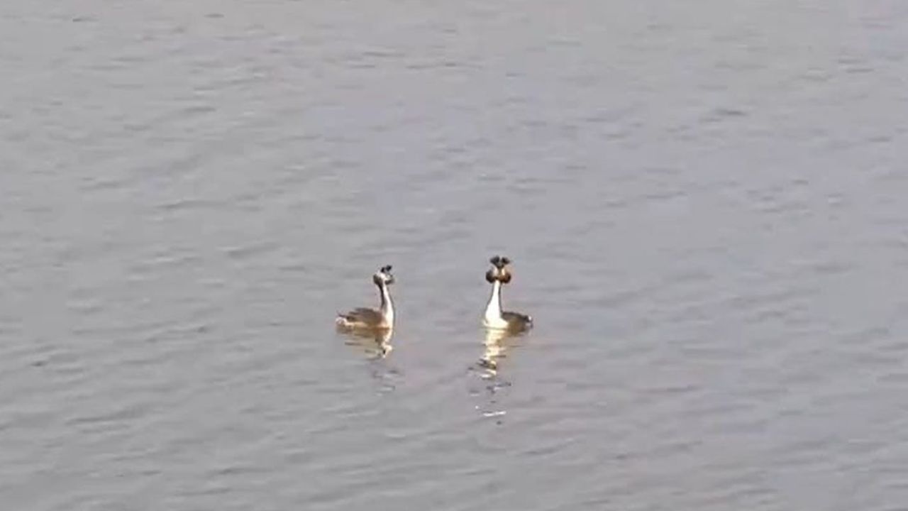 Bursa Doğa Koruma ve Milli Parklar 2'nci Bölge Müdürlüğü ekipleri tarafından kaydedilen görüntülerde, kendilerine özgü davranışlar sergileyen Bahri çiftinin su üzerinde gerçekleştirdiği senkronize hareketler, izleyenlere görsel bir şölen sundu.