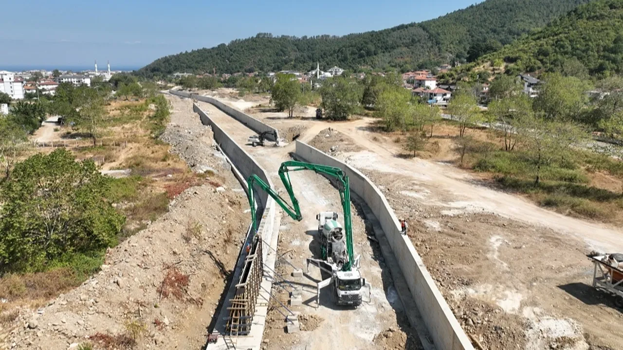 Tarım ve Orman Bakanlığı DSİ Genel Müdürlüğü, Yalova’nın Çınarcık ilçesi Teşvikiye Beldesi’nde Karpuz Deresi taşkın koruma tesisini tamamladı. DSİ Genel Müdürü Mehmet Akif Balta, “730 metrelik beton ağırlık duvarıyla Teşvikiye taşkın riskinden korunacak” dedi.YALOVA (İGFA) - Tarım ve Orman Bakanlığı Devlet Su İşleri (DSİ) Genel Müdürlüğü, modern sulama, arazi toplulaştırma, içilebilir su temini ve taşkın koruma çalışmalarıyla tarım ve vatandaşları desteklemeye devam ediyor.