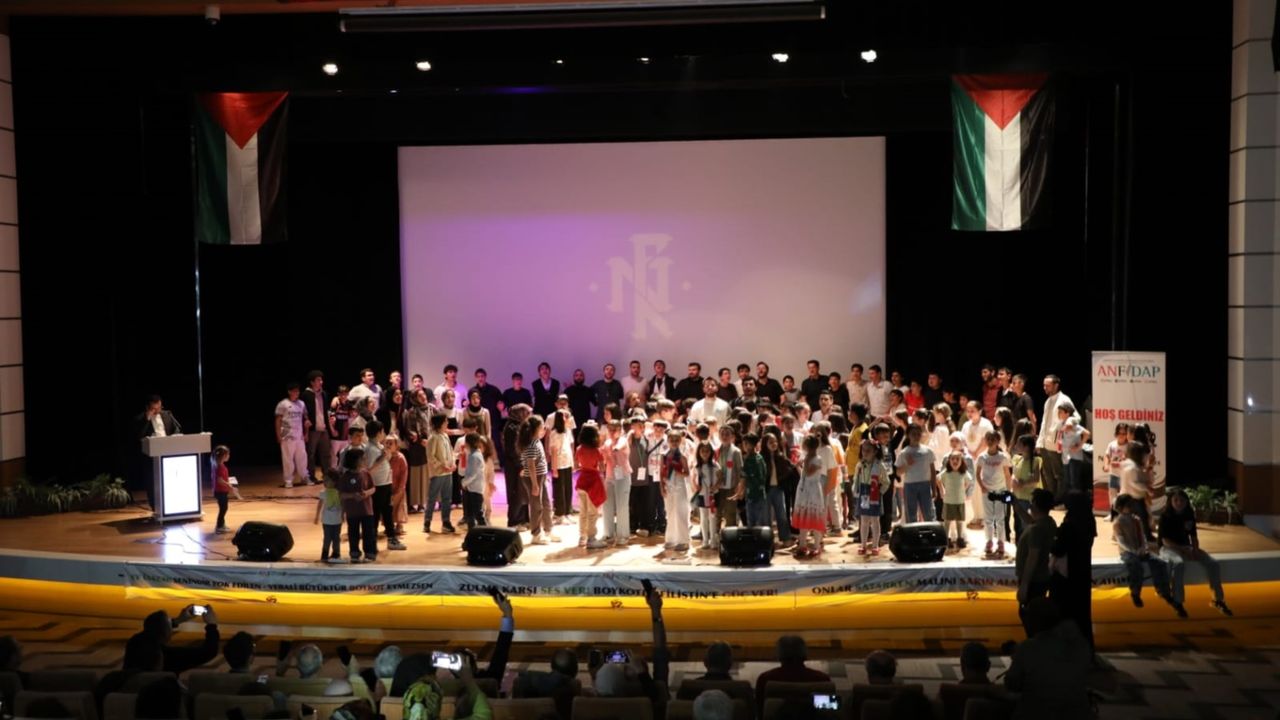 Programda sahne alan Grup Nefer, “Vuslat” adlı eserle salonda büyük bir etki bırakırken, usta tiyatrocu Mehmet Tahir İkiler’in sunduğu kukla gösterisi çocuklara Filistin’i mizah ve duyarlılıkla anlatmayı başardı. Öğrencilerin şarkılara eşlik etmesiyle, etkinlik sanatla birleşen güçlü bir dayanışma havasına büründü.