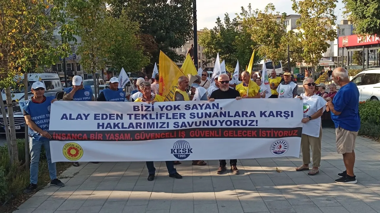Eylemde, hükümetin kamu emekçileri ve emeklilere yönelik toplu sözleşme teklifine karşı grev kararı alındı.İlk olarak söz alan Keşan Tüm Emekliler Sendikası Temsilcisi Ahmet Erkan, Türkiye’de 5,5 milyon kamu çalışanı ve 11 milyon emeklinin ekonomik zorluklarla boğuştuğunu vurguladı. Erkan, “Ülkeyi 23 yıldır yöneten iktidar, 12 trilyonluk devasa bütçelerle övünüyor ama kamu çalışanlarına ve emeklilere sadaka gibi zamlar reva görülüyor. Biz bunu kabul etmiyoruz. İnsanca yaşamak için örgütlenmeli, yan yana gelmeliyiz. Yaşasın örgütlü mücadelemiz!” dedi.