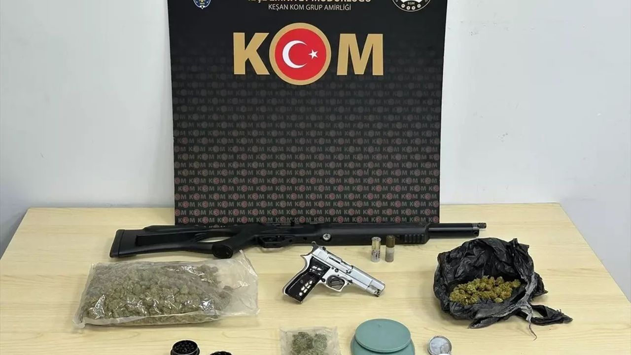 Keşan Emniyet Müdürlüğü Kaçakçılık ve Organize Suçlarla Mücadele Büro Amirliği ekipleri, şüpheli İ.Ç'nin evinde arama yaptı.