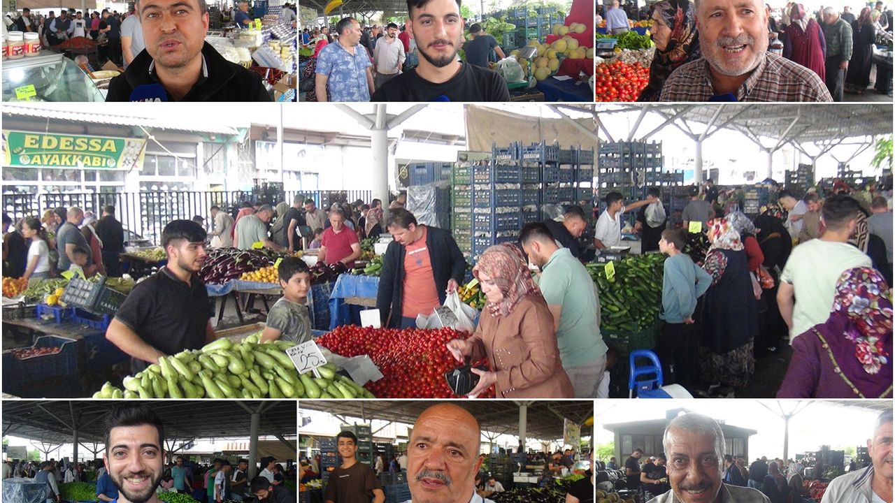 Pazarda sebze ve meyve satışı yapan Faruk Ayhan, "Ramazan sonrası fiyatlarda ciddi anlamada bir düşüş yaşandı. Şu anda tezgahlarda yerini alan sebzelerin hepsi yerli üründür. Ortalama yüzde 70-80 civarında bir düşüş var fiyatlarda ama talep yok. Çiftçi kan ağlıyor. Küçük esnaf olarak zabıtalar tarafından baskı altındayız. Ama seyyarlar, dışarda satanlar vergi kaçıranlar… Çiftçi kan ağlıyor, arada pazarcı esnafı kan ağlıyor. Milletten de talep yok, maliyet de kurtarmıyor. Gelir, artık gideri karşılamıyor. Etiketler pahalı söylemleri Ramazan ayında vardı, şuan her şey göz önündedir. Bir araba Antalya'dan Gaziantep'e geldiğinde 30 bin ile 40 bin lira arasında yakıt yakıyor." dedi.