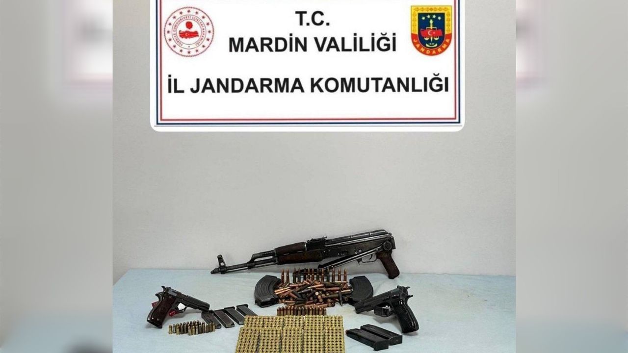 Yapılan aramada: 3 adet el bombası, bir adet kalaşnikof piyade tüfeği, 2 adet tabanca, bin adet çeşitli çaplarda mühimmat ele geçirildi.