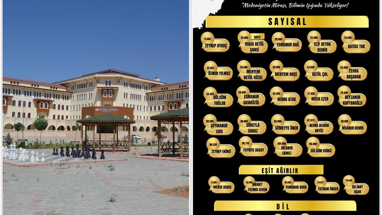 Bu yıl LGS’de elde edilen başarıyı istikrarlı bir şekilde sürdüren TP Fatıma Zehra Kız Anadolu İmam Hatip Lisesi, YKS’de de aynı başarıyı tekrarlayarak eğitimdeki kararlılığını ve yüksek standartlarını bir kez daha ortaya koydu.