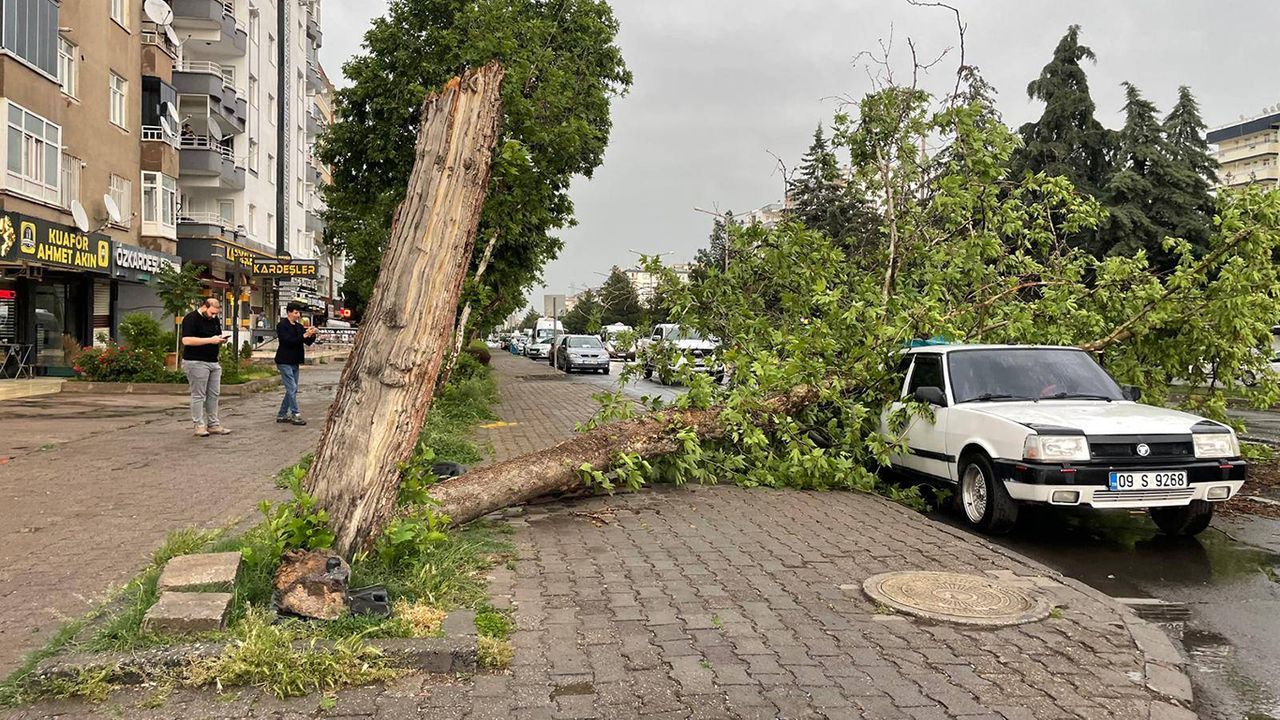 Merkez Bağlar ilçesinin Mevlana Halit Mahallesi Turgut Özal Bulvarı Bayramoğlu Camii civarında, fırtına nedeniyle bir ağaç kırılarak park halindeki bir aracın üzerine devrildi.
