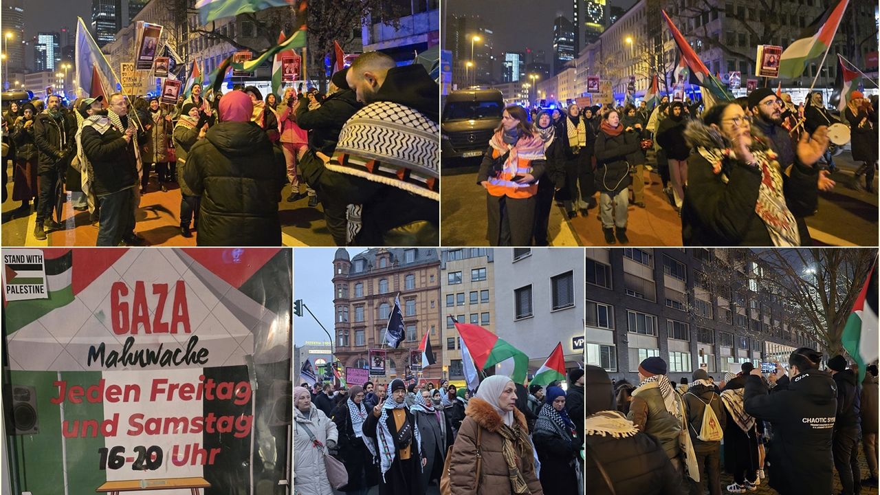 Şu anda, Frankfurt polis karakolunun önünde çok sayıda kişi, haksız yere alıkonulduğunu belirttikleri Dr. Mahmud Ebu Odeh’in serbest bırakılması talebiyle toplanmış durumda.