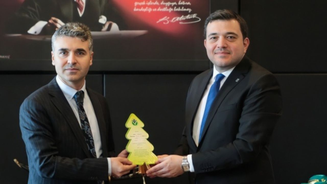 Ziyarette, Başkan Koçer, Gaziantep Cumhuriyet Başsavcısı İsmail Karataş adına dikilen fidan sertifikasını takdim etti.