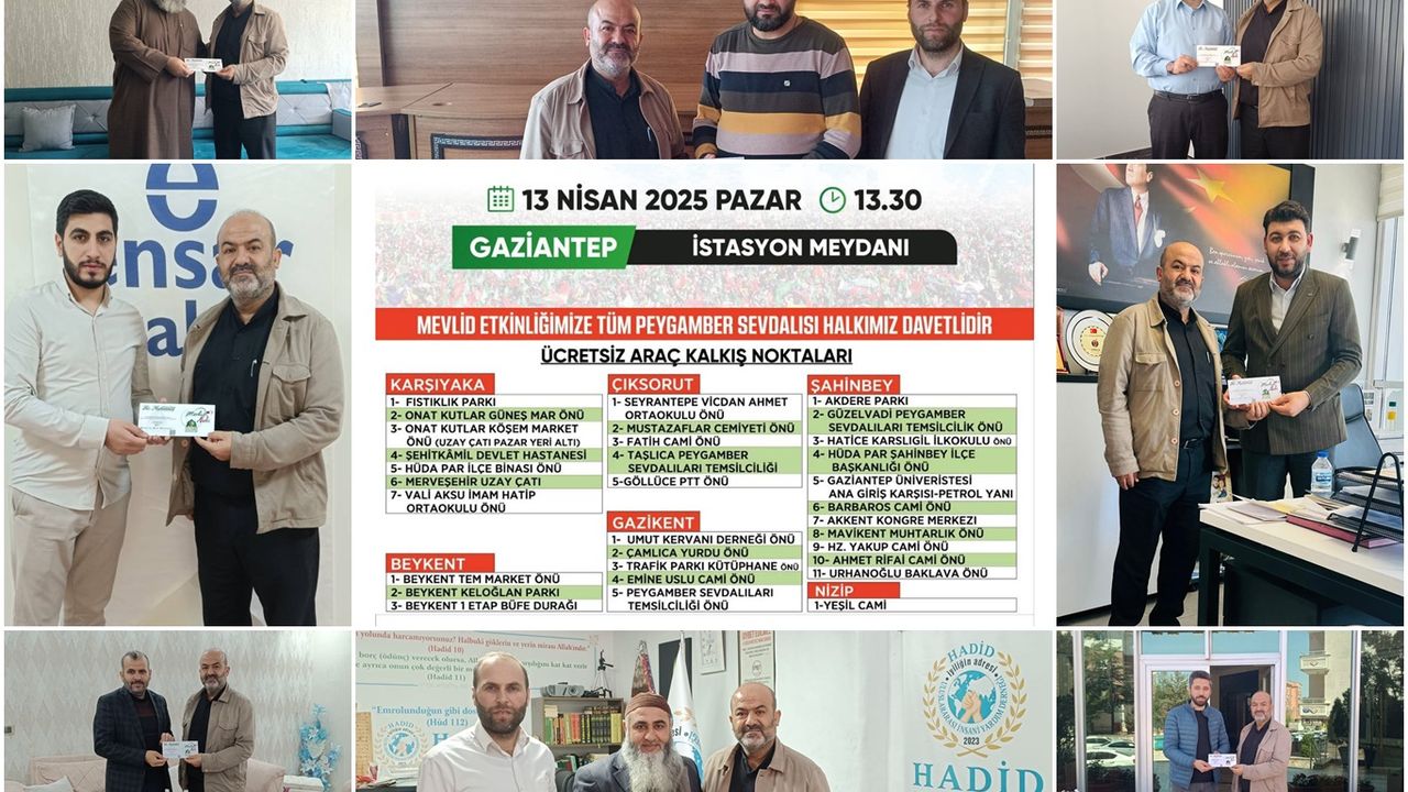 13 Nisan 2025 Pazar günü saat 13.30'da İstasyon Meydanı'nda başlayacak "Direniş Önderi Hazreti Muhammed (sallallahu aleyhi vesellem)" temalı Mevlid-i Nebi etkinliğine tüm Gaziantepliler davet edildi.