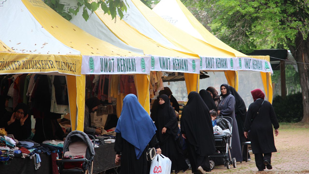 Gaziantep Umut Kervanı Başkanı Mustafa Özaslan, "Gaziantep Umut Kervanı olarak her yıl düzenlediğimiz kermesimize bu yıl da inşallah başlamış bulunmaktayız. Şu anda Gaziantep Yüzüncüyıl Parkı Ulu Cami yanında kermes alanındayız. Mayıs'ın 2'si, 3'ü, 4'ü yani cuma, cumartesi, pazar buradayız. Allah nasip ederse daha önceden tespit etmiş olduğumuz muhtaç ve ihtiyaç sahibi aileler yararına yapıyoruz kermesi. Burada elde ettiğimiz gelirleri inşallah muhtaç olan ihtiyaç sahibi ailelere ulaştırmak üzere şu anda bir çalışma yapıyoruz. Gördüğünüz gibi kermesimiz hazır, bugün başlıyoruz. Burada hayır sahiplerimize bir çağrıda bulunuyoruz: Gelin kermesimizi görün hem de ihtiyaçlarınızı buradan karşılayın. Bu hayır çalışmasına bir katkıda bulunun. Hakikaten Gaziantep bu şeylere duyarlıdır, burada alışverişler yapılıyor. Gördüğünüz gibi burada ayakkabı, elbise, döner reyonu, cızbız reyonu ve daha birçok çeşidimiz bulunmaktadır." dedi.