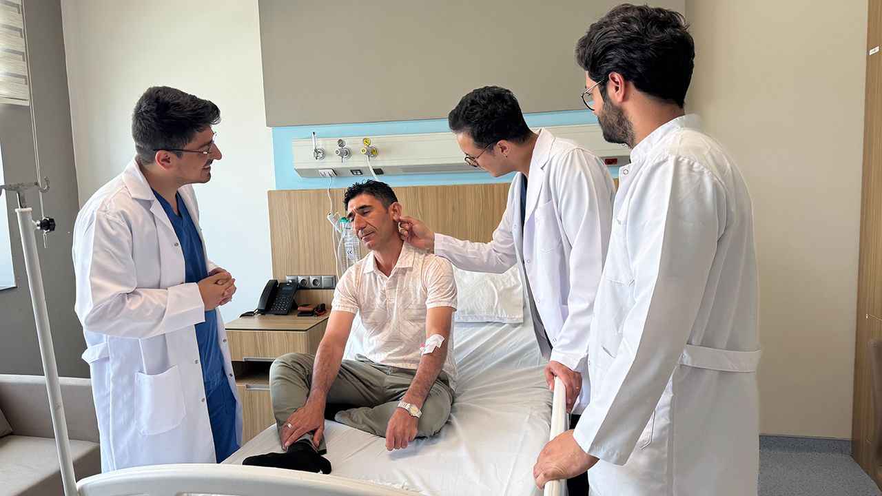 40 yaşındaki erkek hasta, kulak memesinin tamamen kopması nedeniyle hastaneye başvurdu. Plastik Cerrahi ve Mikrocerrahi ekibinin değerlendirmesi sonrası, 2 saat süren operasyonla kulak memesi yerine dikildi.