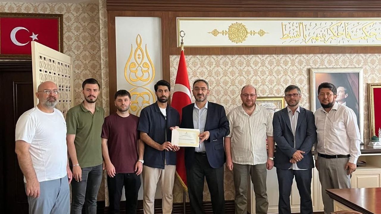Bağışı Türkiye Diyanet Vakfı adına kabul eden Karabayır, mezuniyet komitesine teşekkür belgesi takdim etti. (İLKHA)