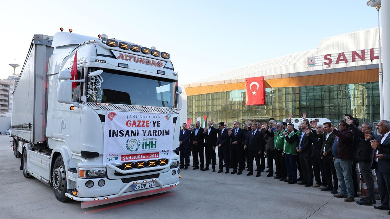 Konuşmaların ardından hazırlanan yardım tırları, Gazze’deki ihtiyaç sahiplerine ulaştırılmak üzere dualarla Mersin Limanına doğru yola çıktı. (İLKHA)