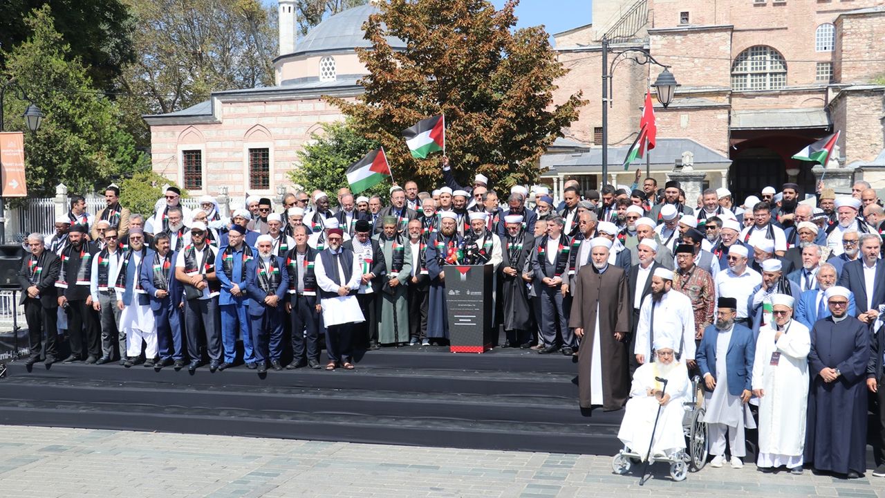 Dünya Müslüman Âlimler Birliği tarafından İslam Âlimleri Vakfı'nın desteğiyle gerçekleştirilen,50'den fazla ülkeden 150'i aşkın âlimin katıldığı "İslami ve İnsani Bir Sorumluluk: Gazze" konferansının sonuç bildirgesi Ayasofya Camii'nde okundu.