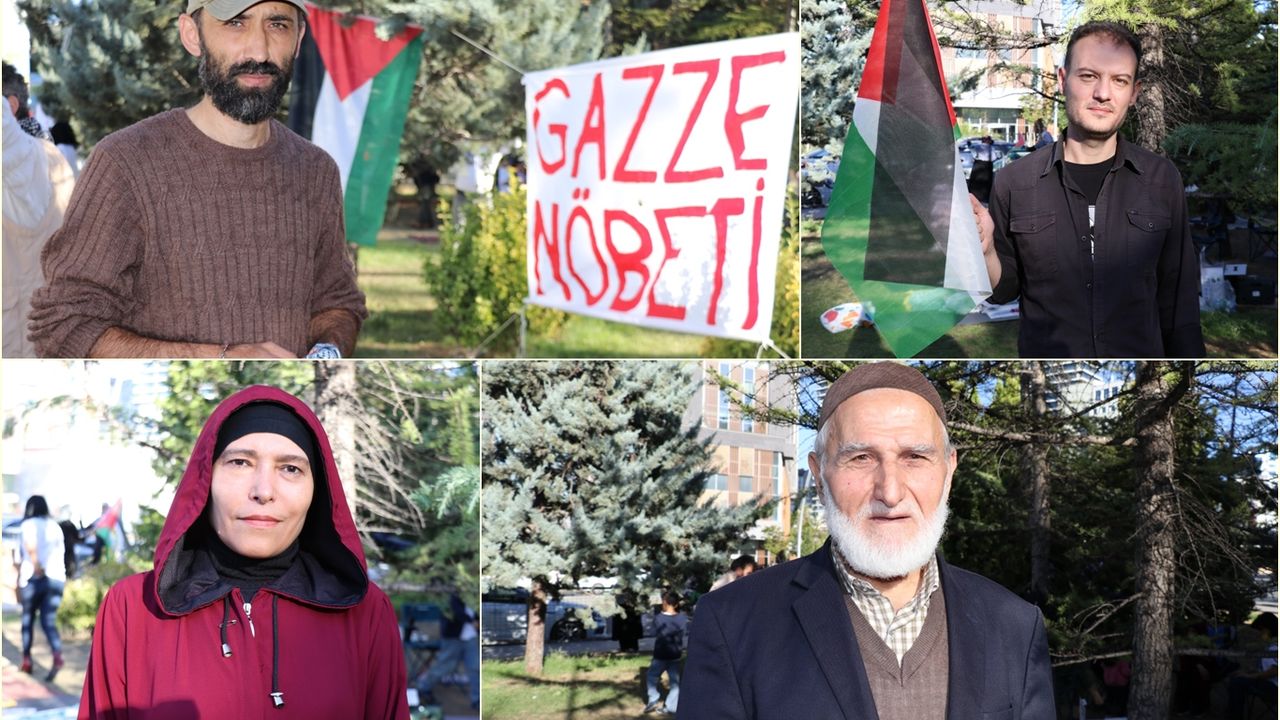 Gazze nöbetine destek veren Ercan Evcimen, "Burada olmak benim için onur verici. Çünkü Gazze ve Filistin, insanlığın onurudur. Aynı zamanda namusudur. Biz de burada Filistin’e sahip çıkarak hem onurumuzu hem de namusumuzu korumuş oluyoruz. Amacımız, insanlara bir şeyleri hatırlatmak. Bayrak sallayarak, bu eylemlere destek vererek, boykot yaparak, sosyal medyada gündem oluşturarak bu mücadeleye katkı sunabiliriz. Etrafımızdaki insanlarla da bunu sürekli gündemde tutmalıyız. Sözü muhatabına söylemeleri çok önemli. Duygularım her zaman umut taşıyor. Umudumuz asla tükenmedi. Mücadeleye sonuna kadar devam etmekte kararlıyız." ifadelerine yer verdi.
