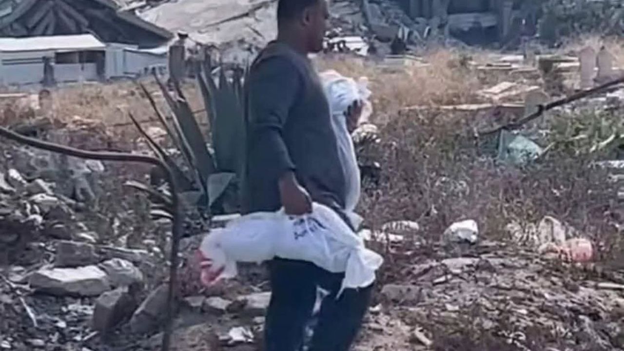 Gazze’de bir babanın, işgalciler tarafından soğukkanlılıkla katledilen çocuklarının cesetlerini yalnız başına taşıması objektiflere yansıdı.