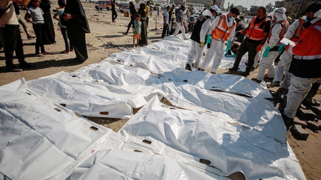 Gazze Şehri'nin batısındaki El-Kâtibe Meydanı’nda, sivil savunma ekipleri ve gönüllüler tarafından 60’tan fazla şehidin cenazesi toprak altından çıkarıldı.