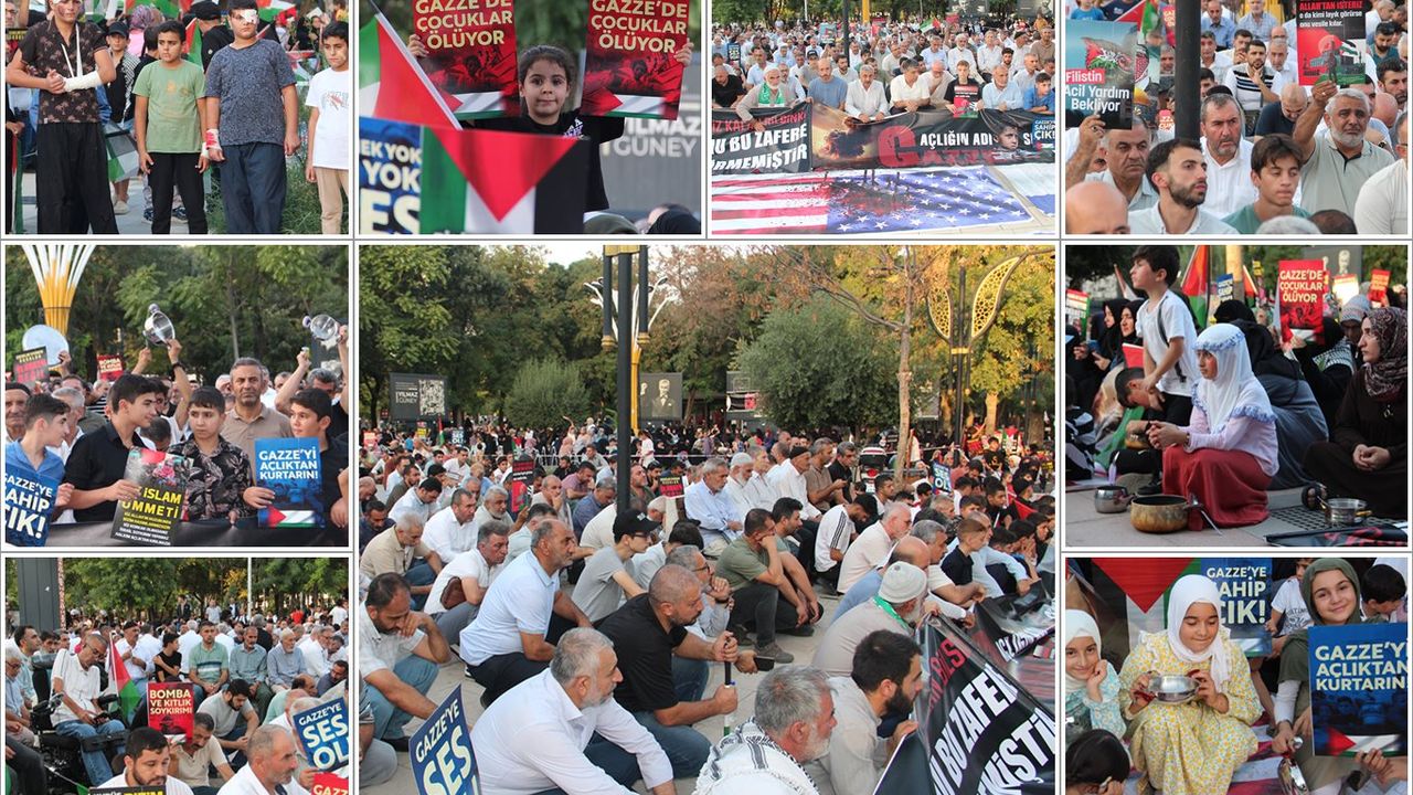 "Açlığın adı Gazze, sessizliğin adı dünya" temasıyla düzenlenen sessiz oturma eylemi, Atatürk Parkı'nda yoğun katılımla gerçekleştirildi.