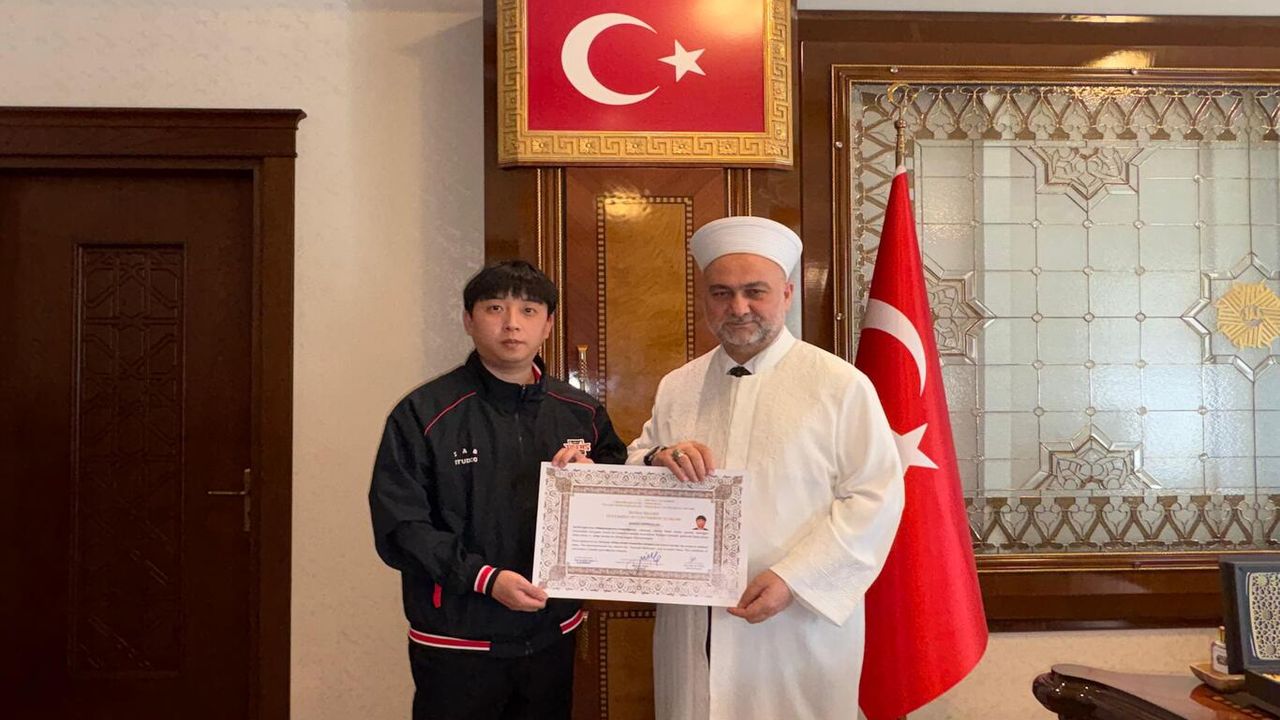 Merasimde Minwoo beyefendiye ihtida belgesi ile birlikte Diyanet İşleri Başkanlığı yayınlarına ait çeşitli kitaplar ve İngilizce Kur’an-ı Kerim meali hediye edildi.