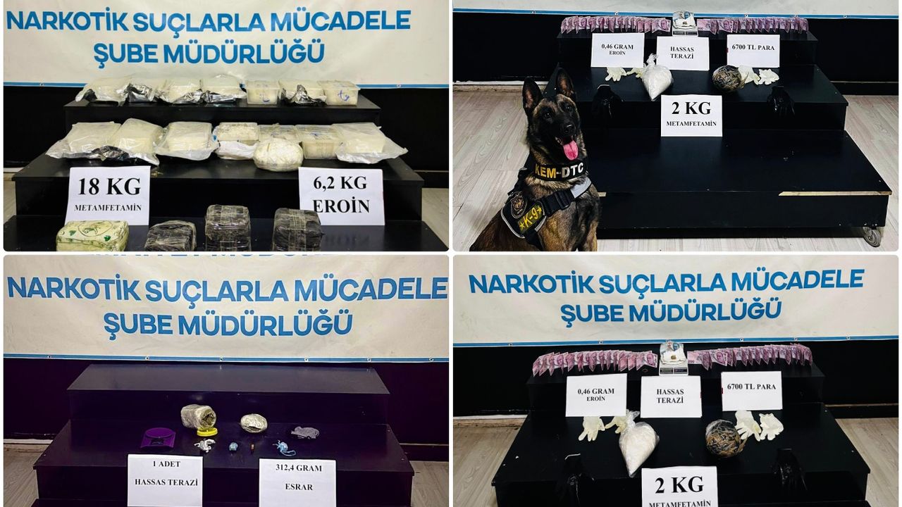 Operasyonlarda 312,04 gram esrar, 6 kilo 200,46 gram eroin ve 20 kilo 017,21 gram metamfetamin olmak üzere toplam 26 kilo 530,07 gram uyuşturucu madde ele geçirildi.
