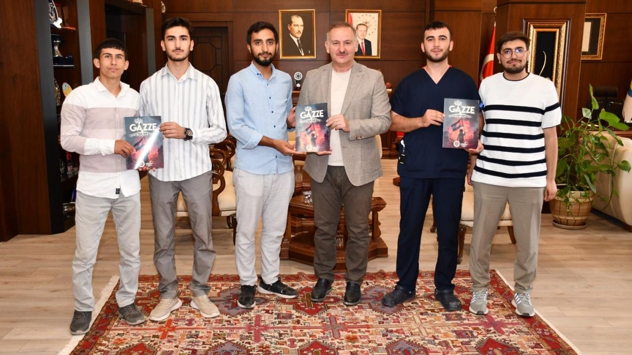 Üniversitenin Erdemli Gençlik Kulübü üyeleri, Rektör Prof. Dr. Mehmet Tahir Güllüoğlu’nu ziyaret ederek “Gazze Dergisi”ni kendisine takdim etti.