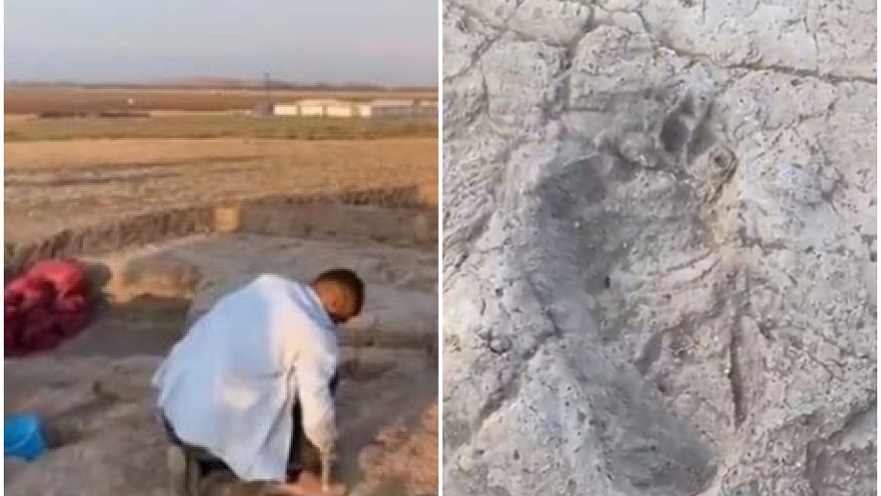 "Tell Kurdu Höyük’te milattan önce 5 bin 200 yılına ait katmanlarda yürütülen çalışmalarda çok nadir rastlanan bir bulguya ulaşıldı. Yağmurla yumuşamış çamur zemin üzerinde yürüyen insanlara ait 5 ayak izi tespit edildi. Bu izler, 7 bin yıl öncesine ait çarpıcı bir insan hikâyesini bizlere aktarıyor. Geleceğe Miras Projemiz ile, 60 yılda yapılanı 4 yılda başarma hedefiyle tarihi ve kültürel mirasımıza sahip çıkmayı sürdürüyoruz."