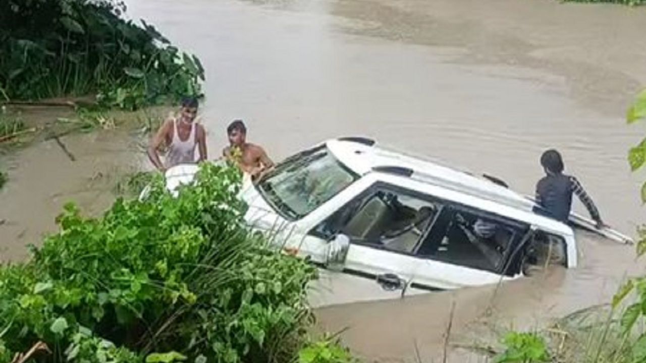NDTV kanalının aktardığı bilgiye göre, araç su kanalına düştü.