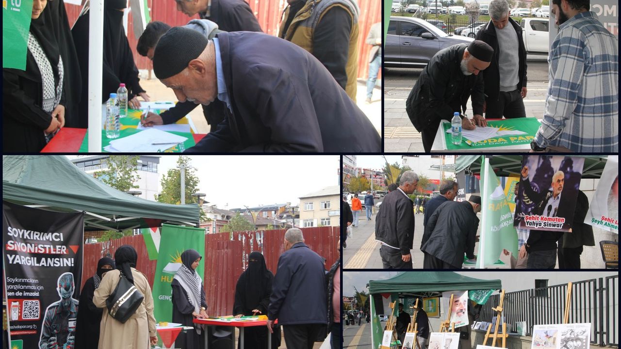 HÜDA PAR’ın TBMM’ye sunduğu “Çifte vatandaş siyonistlerin yargılanması”na ilişkin kanun teklifi kapsamında düzenlenen kampanyada, vatandaşlar imza vererek desteklerini gösterdi.