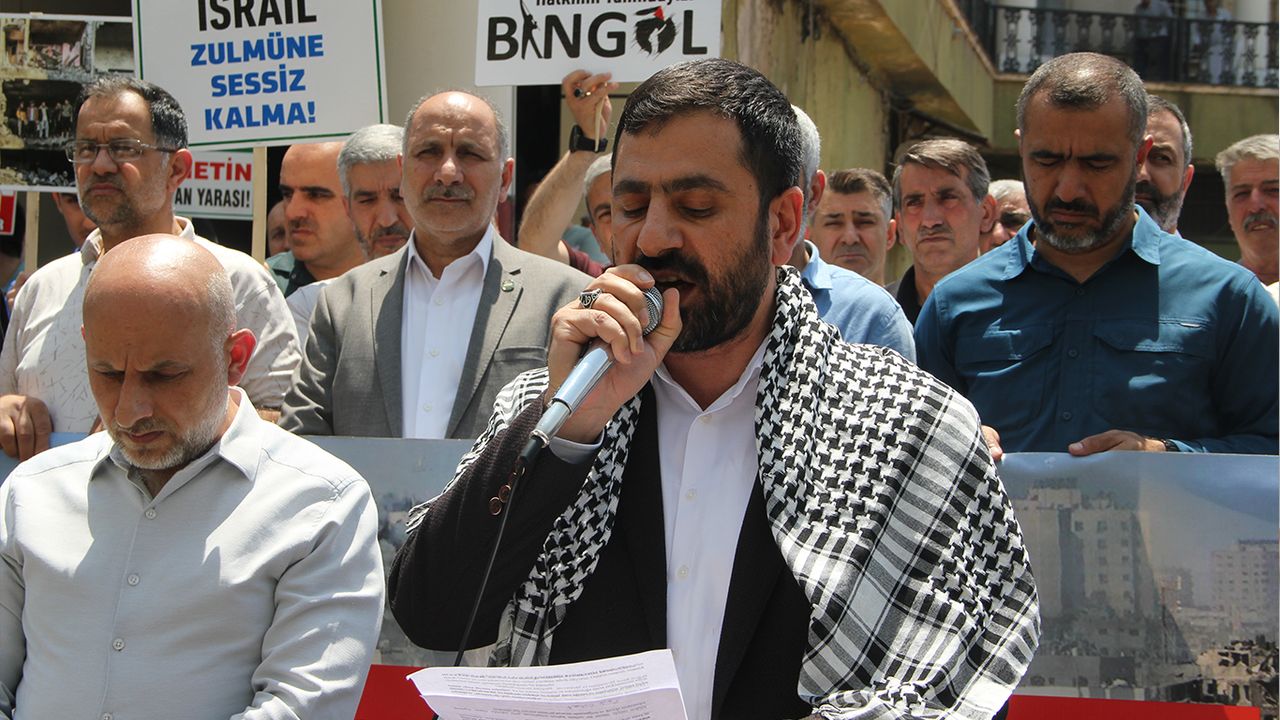 Uluslararası hukukun hiçe sayıldığını belirten Üçgül, "7 Ekim'den bu yana Gazze'de yaşananlar, tarihin en karanlık sayfalarına bir soykırım ve savaş suçu olarak yazılmaktadır. Uluslararası hukukun ayaklar altına alındığı, insanlık vicdanının paramparça edildiği bu süreçte, dünya adeta sağır ve dilsiz bir seyirciye dönüşmüştür. İşgalci siyonist rejim, masum sivilleri hedef almakta; hastaneleri, okulları, camileri bombalamakta ve tüm dünyanın gözü önünde bir halkı açlığa ve ölüme mahkûm etmektedir. Gazze'de yaşananlar, Hiroşima ve Nagazaki'deki gibi insanlığa karşı işlenmiş bir suçtur. O günlerde Amerikan silahları Japonya'yı yok ederken, bugün aynı barbarlık, insanlık dışı bir siyonist zihniyetin elinde Filistin halkına uygulanıyor. siyonistler, Filistin halkını boyun eğmeye zorlamaktadır. Ancak Filistin'in sözlüğünde 'teslimiyet' yoktur!" dedi.