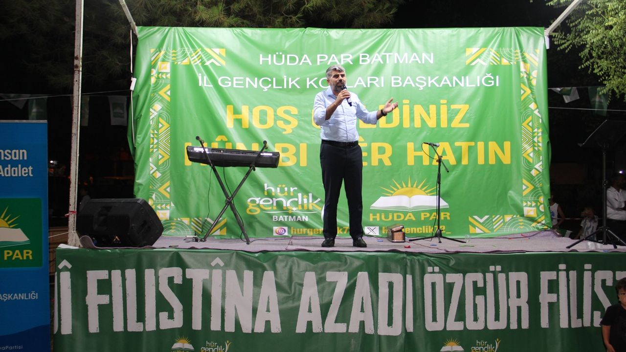 Programın başında konuşan HÜDA PAR Batman İl Başkanı Davut Şahin, Gazze'deki direnişe dikkat çekerek, tüm insanlığı Filistin halkına sahip çıkmaya davet etti.