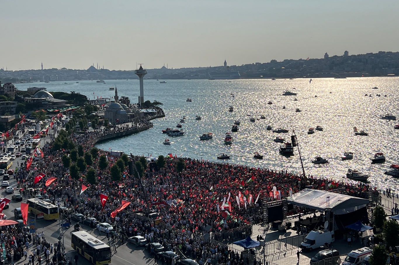 "Gazze Ablukada, İnsanlık Ayakta" sloganı ile Üsküdar Meydanı'nda düzenlenen Özgür Gazze Mitingi'nde konuşan HÜDA PAR Genel Başkanı Zekeriya Yapıcıoğlu, "Siyonist rejim kırmızıçizgileri çoktan aştı. 7 Ekim 2023’te bir tufan koptu, Aksa Tufanı. Ardından, o gün bugündür, 20 ayı aşkın süredir bu soykırım, bu vahşet yaşanıyor. Hemen 7 Ekim sonrasında Türkiye'den yapılan bir açıklama, 'Asıl hedef Türkiye'dir' şeklindeydi. Benzer bir açıklama İran'dan da geldi ve 'Hedef İran'dır' dediler. Evet, aslında hem İran hem Türkiye hem Ürdün hem Suriye hem Irak… Her taraf bu siyonist vahşilerin hedefindedir. Onların sapık bir ideolojileri var. Onlar bu bahsettiğim ülkelerin idaresi altındaki toprakların kendilerine vadedildiğine inanıyorlar ve buralarda hâkimiyet kurabilmek için her türlü vahşeti sergilemeyi kendilerinde bir hak olarak görüyorlar." dedi.