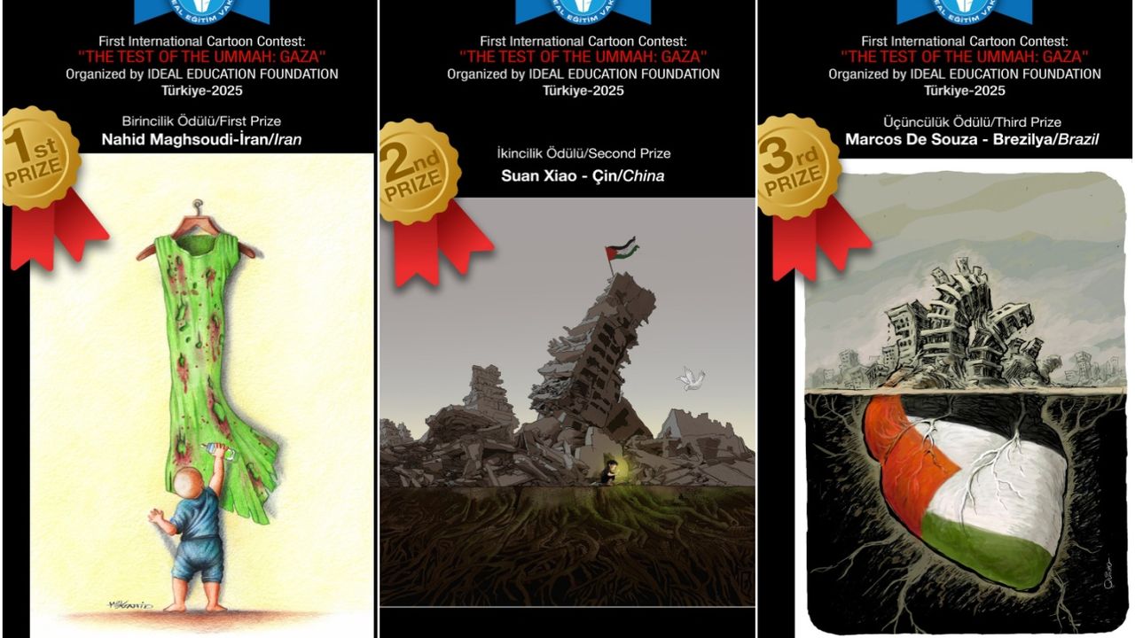 İdeal Eğitim Vakfı (İDEV)' nın düzenlediği "Ümmetin İmtihanı Gazze" temalı uluslararası karikatür yarışması, 49 ülkeden 210 karikatüristin katılımıyla gerçekleşti. Katılımın yoğun olduğu yarışmada karikatüristlerin paylaştığı 530 eserden İran'dan Nahid Maghsoudi 1'inci, Çin'den Suan Xiao 2'nci ve Brezilya'dan Marcos De Souza 3'üncü, Juri tarafından ödüle layık görülerek dereceye giren İran'dan Mahboube Pakdel'de 4'üncü oldu.