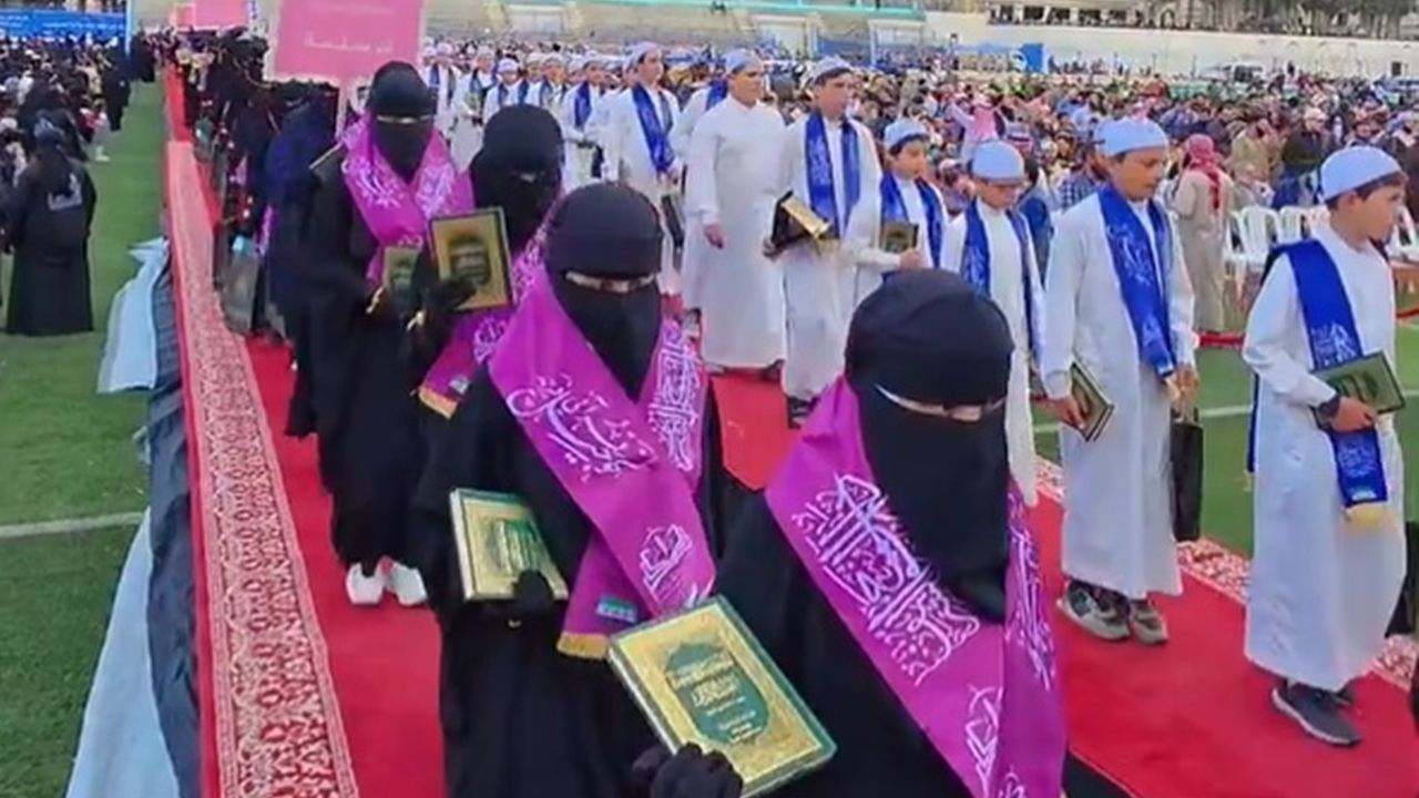 Hafız olan 1.493 talebe, törende ellerinde Kur'an-ı Kerim'le katılımcıların arasında kortej yaparak, statta kendilerine ayrılan bölüme oturdu.