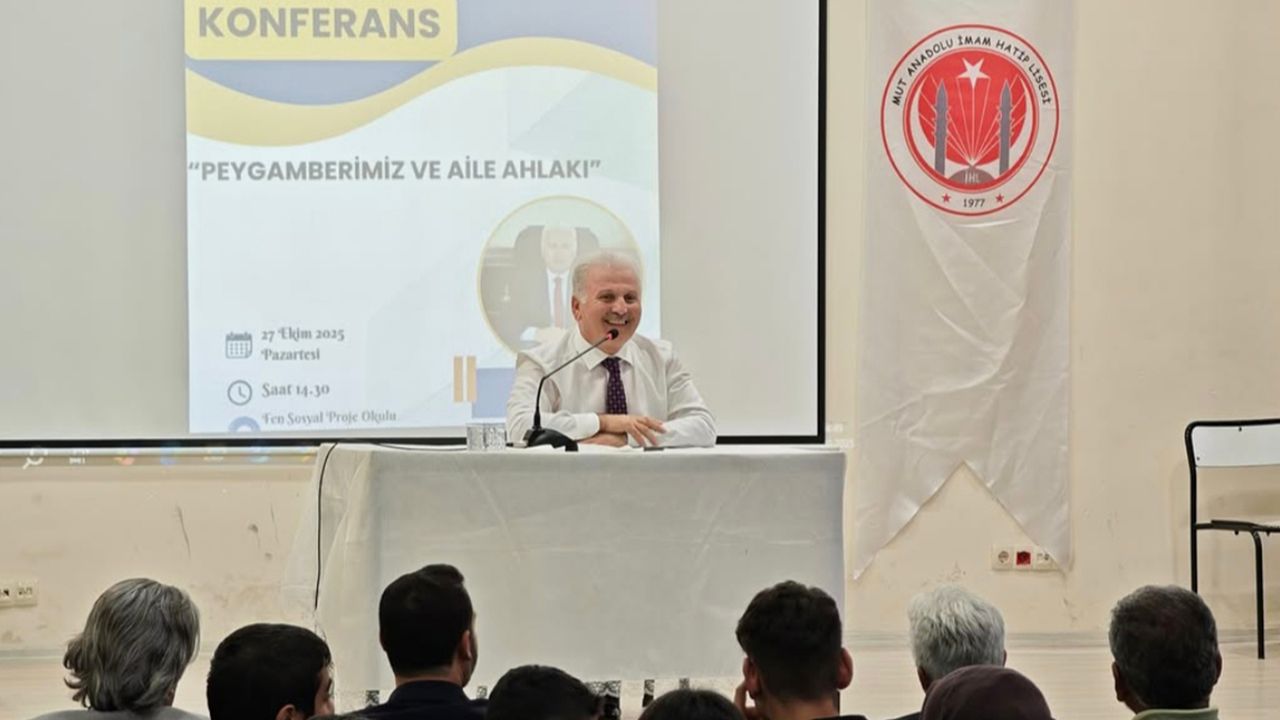 Mersin İl Müftüsü Aydın Yığman, Mut Müftülüğü ile Mut Anadolu İmam Hatip Lisesi Fen ve Sosyal Proje Okulu iş birliğinde, “Doğumunun 1500. Yılında Âlemlere Rahmet Hz. Muhammed (s.a.s.)” teması çerçevesinde düzenlenen “Peygamberimiz ve Aile Ahlakı” konulu konferansa konuşmacı olarak katıldı.