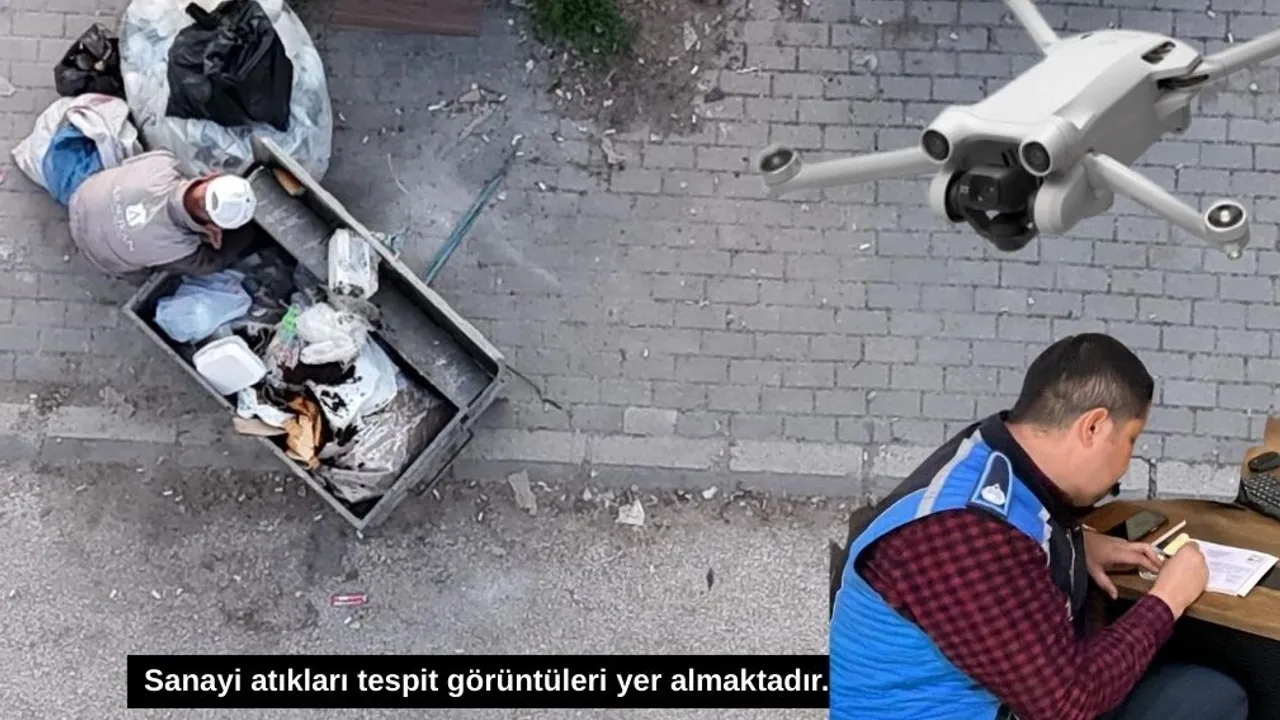 Çevre Timi drone ile tespit çalışmalarında özellikle sanayi bölgelerinde endüstriyel atıkların çevreye gelişi güzel atılması ya da bu atıkların yakılarak hava kirliliğine sebep olunması gibi olumsuzlukların tespitlerini gerçekleştiriyor. Bunun beraberinde evsel konteyner içerisinde atılması yasak olan endüstriyel atıkların tespitleri de yapılırken şehir genelinde çarşı merkezi gibi işyeri yoğun bölgelerde işyeri önü temizlik denetimleri ile cadde ve sokaklarda araçlardan seyir halinde atılan çöplerle ilgili denetim ve tespitlere hız kesmeden devam ediyor.