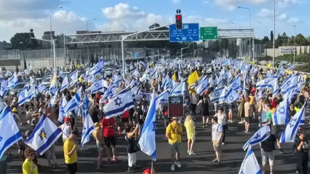 Öte yandan işgalci siyonistler de aynı taleplerle işgal altındaki Filistin’in ortasında bulunan 531 numaralı yolu trafiğe kapatarak Netanyahu'ya baskı yaptı. (İLKHA)